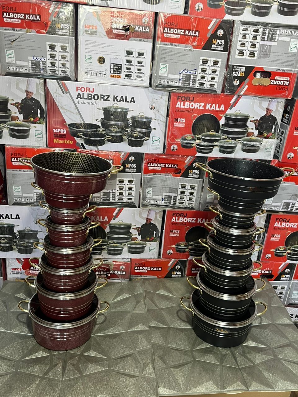 🟢🔥 سرویس ۱۴ پارچه گلدونی  لب چدن دسته طلایی