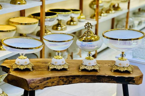 ناموجودسرویس پذیرایی ۲۵ پارچه شامپاین طلا مودنا با پایه کینگ سفید گوی