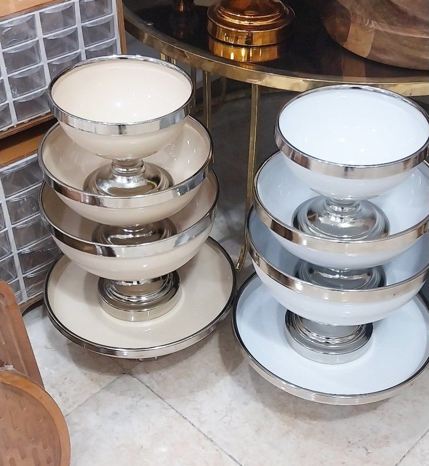 ناموجودسرویس پذیرایی ۲۵ پارچه شامپاین طلا مودنا با پایه کینگ سفید گوی