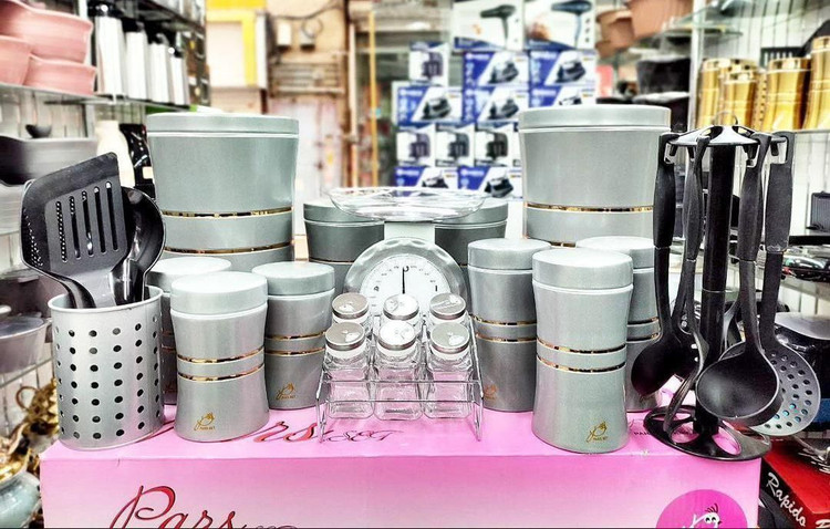 سرویس آشپزخانه ۲۹ پارچه پارس ست نقره ای کمر طلا