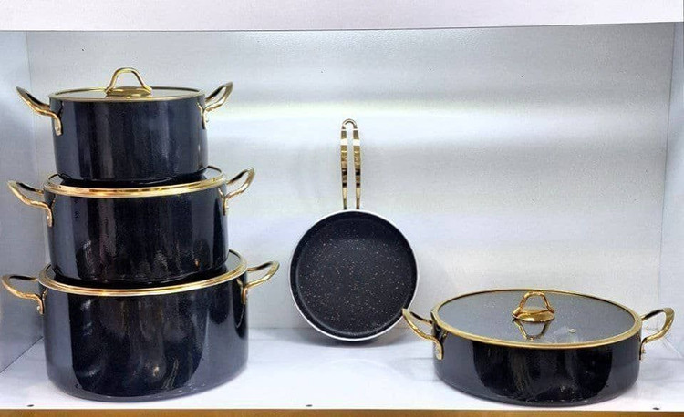 سرویس9پارچه قابلمه طرح ترک درب و لبه طلایی