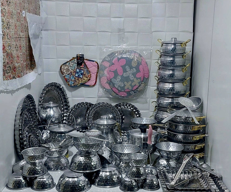۱ عدد کفگیر برنج، ۱ عدد کفگیر کوکو، ۱ عدد کفگیر استیل کوچک، ۳ عدد صافی چای، ۳ عدد دم کنی در سایزهای ۲۰،۲۲،۲۴ سانت، ۱ عدد سفره ۶ نفره، ۱ عدد دستگیره ۲تایی