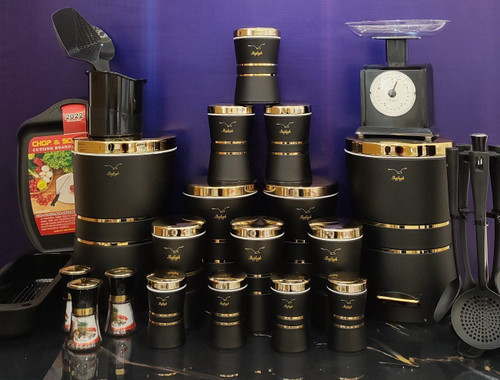 سرویس آشپزخانه ۲۹ پارچه کمر باریک مشکی درب طلایی پارس ست (شفق)